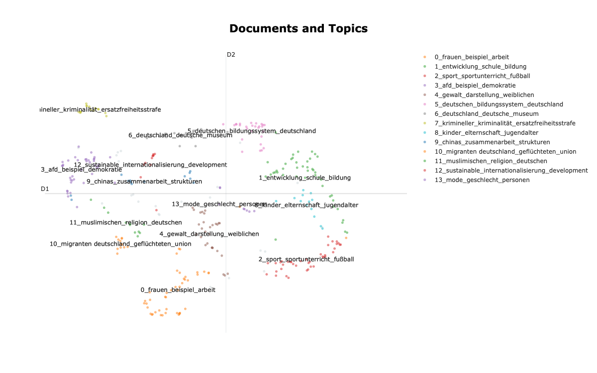 Due to data protection, I don’t show the interactive version of the results, but only provide a screenshot of the topic clustering: